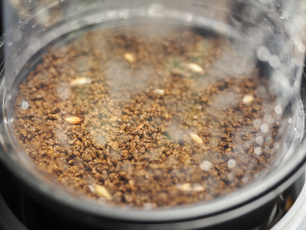 乾燥防止の蓋もある程度のところで取らないと徒長しちゃうなーと思っていますので、頃合いを見て外す予定です。