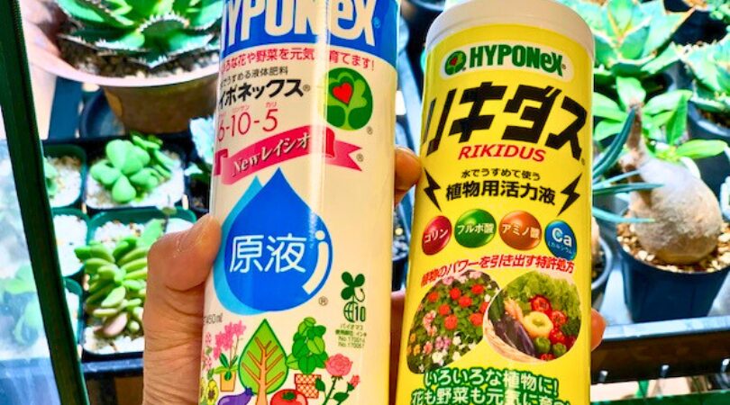 ※「効果が緩やか」という内容に関しては肥料によります。「マグァンプK」は緩効性肥料ですが「ハイポネックス微粉」は即効性があります。今回は「微粉肥料」と紹介していますので即効性のある「ハイポネックス微粉」で考えていただければ幸いです。