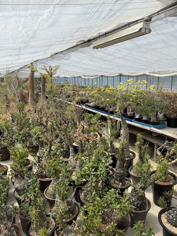 温室の扉を開けた瞬間、ずらりと並ぶサボテンやコーデックスたちに圧倒されました。どの株も管理状態が良く、“選ぶ楽しさ”を存分に味わえます。