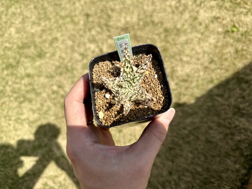 立体感のある葉模様に惹かれて選びました。見た目が派手なのでインテリア性も高い株です。我が家にはハイブリッドアロエの中でもブランド品種の”テンプラ”がいるので、かけ合わせもしたいなーと思い選びました。