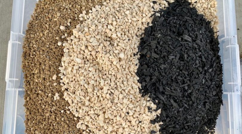 細かい粒子状のものあったので、フルイにかけてから用土に加えました。