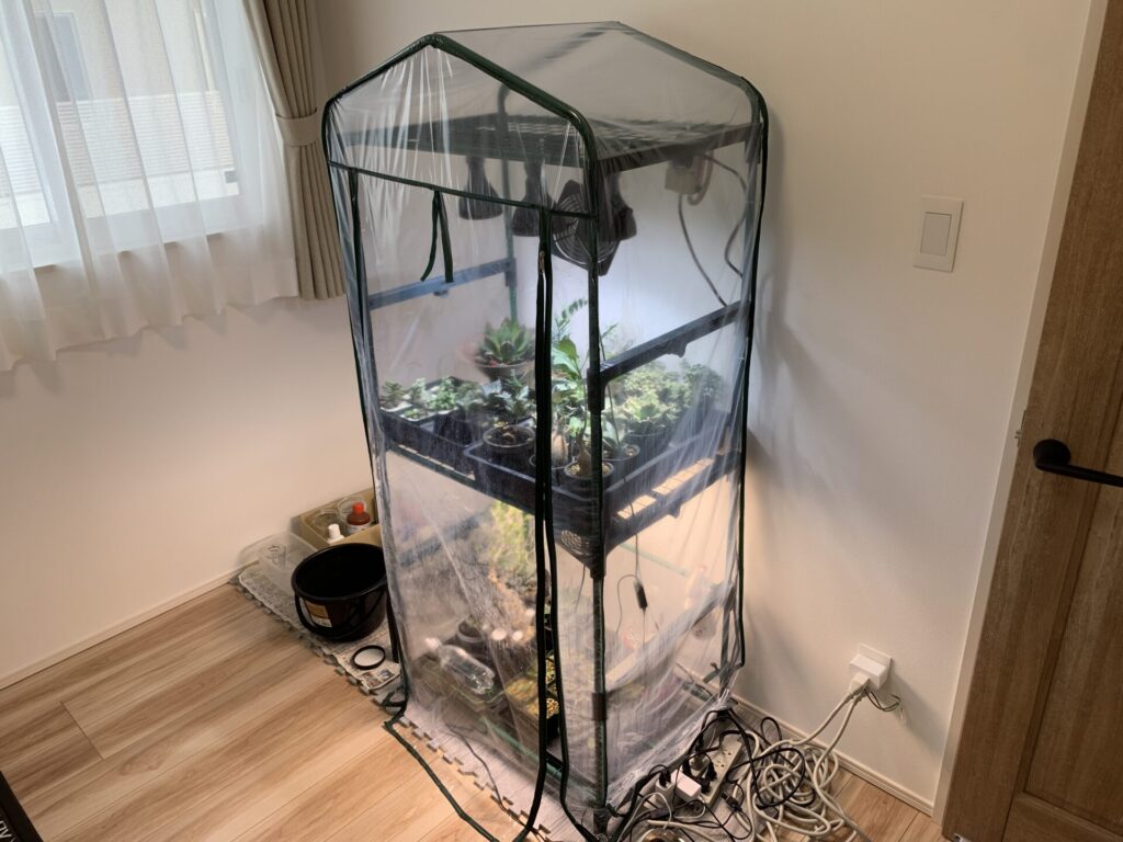これからビニール温室での冬越し・発根管理を始めたい方向けに、本体+加熱+加湿+計測+底面給水まで一括で整うスターター一式をまとめました。